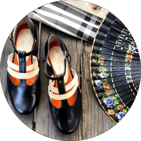 From day to night! If you love heels, but still want the comfort and manoeuvrability of a flat, then this 1930s-1940s inspired laced shoe is for you. Ladies with a slightly wider foot will find this cut to be quite comfortable. Like all of our shoes, the supple leather softens up with wear. You’ll love them!