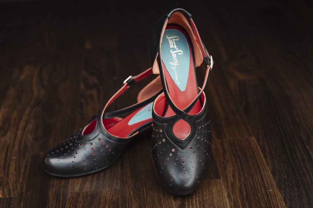 These retro shoes have a footbed that is softly and extensively padded from heel to toe. The cut of this elegant model of vintage-style shoes provides excellent hold and is well-suited also to wider feet. Feet with bunions, high arches, or simply the wear and tear of life on them will be able to feel especially comfortable in this model. The brushed leather of the sole is suitable for any floor and can be worn indoors and out. All of which makes them the best dancing shoes and truly comfortable.