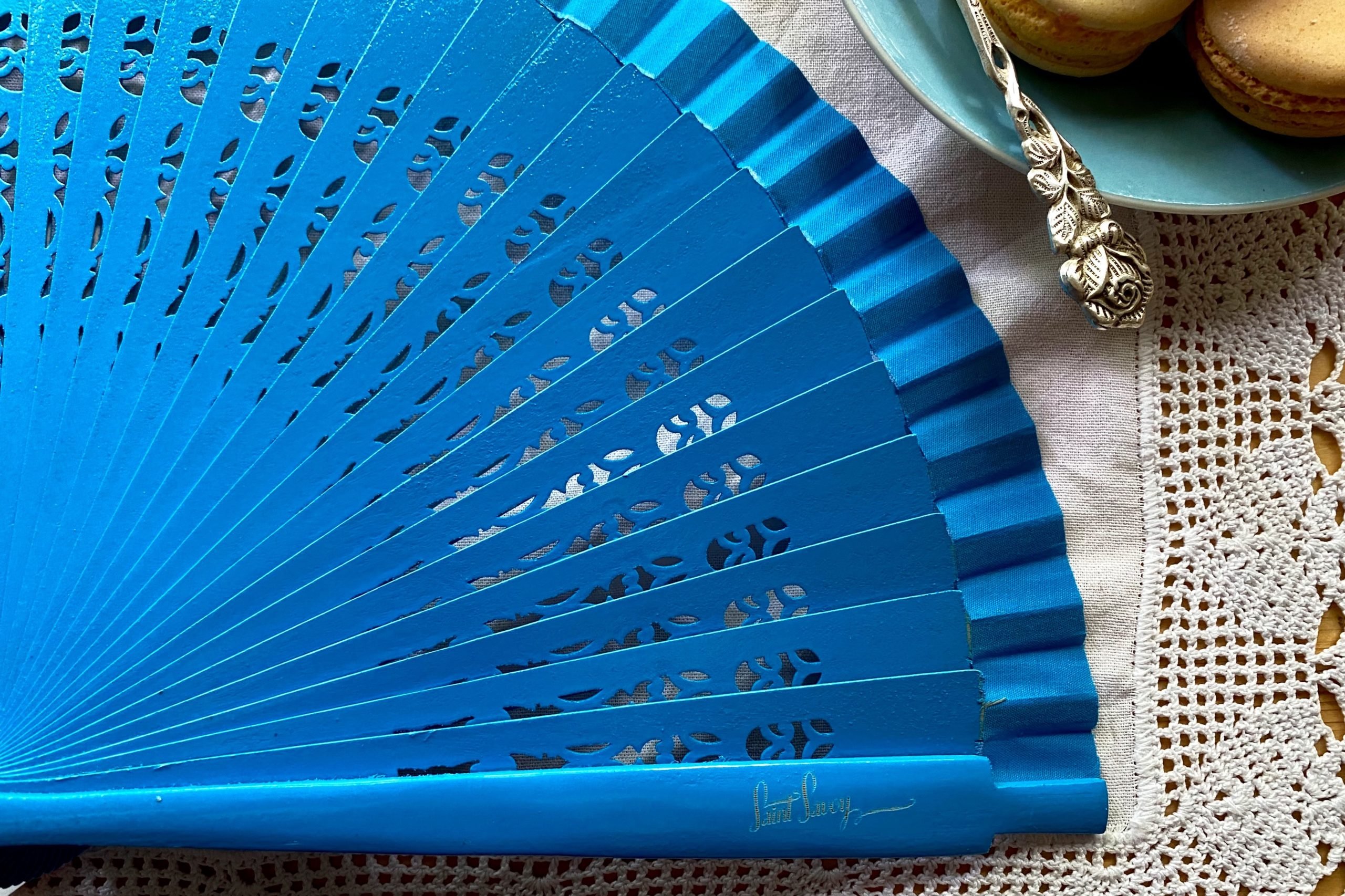 A good fan is one of the dancer’s most important accessories. Our fans are made of paper-thin carved wood and finished with cotton trim. We have carved the “COCO” pattern into the slats and delicately engraved our logo on the top cover.