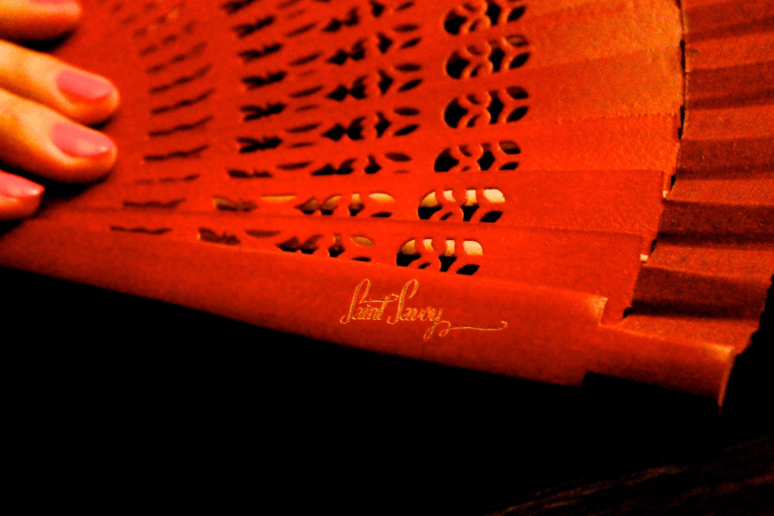 A good fan is one of the dancer’s most important accessories. Our fans are made of paper-thin carved wood and finished with cotton trim. We have carved the “COCO” pattern into the slats and delicately engraved our logo on the top cover.