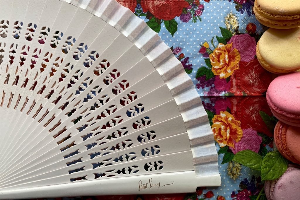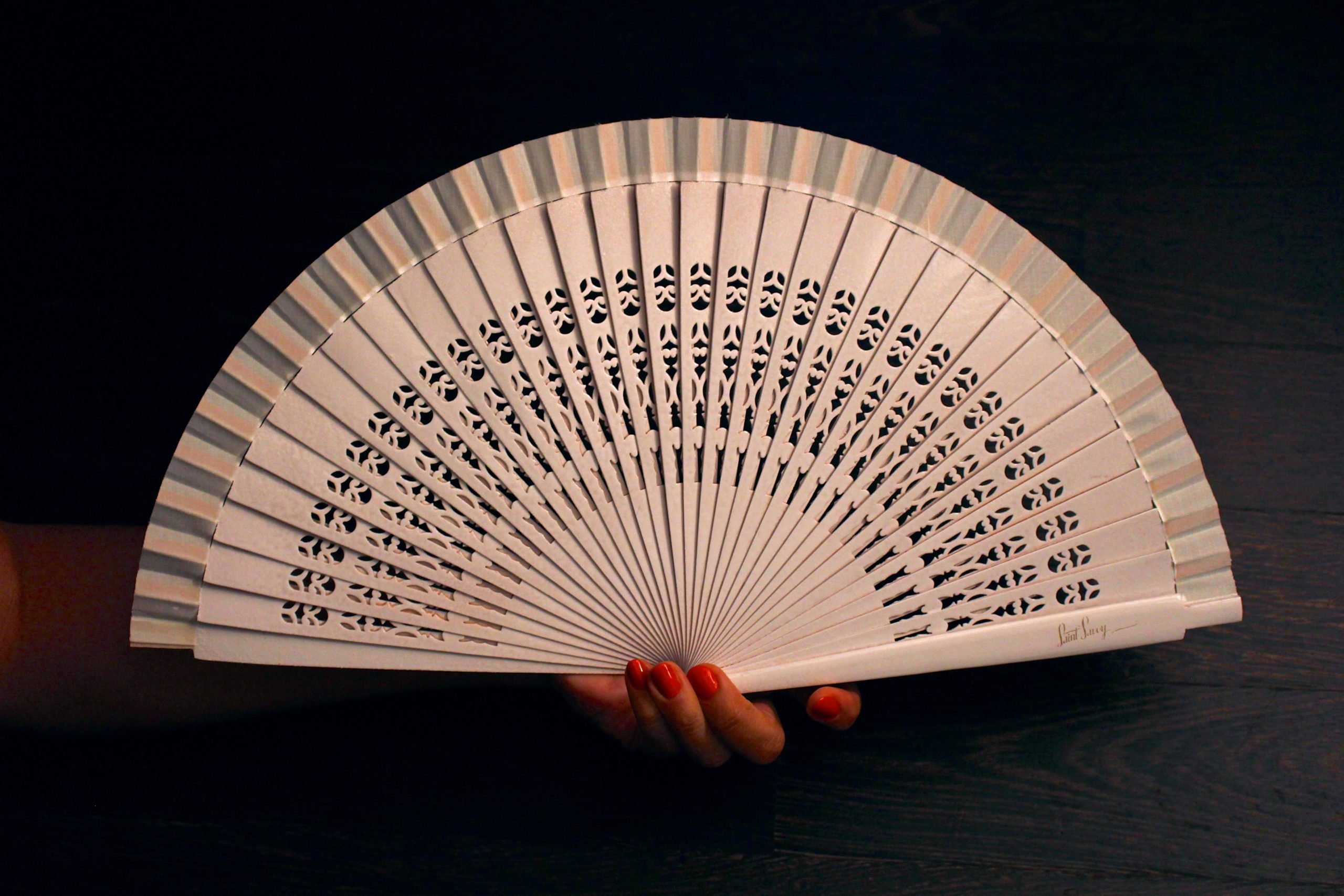 A good fan is one of the dancer’s most important accessories. Our fans are made of paper-thin carved wood and finished with cotton trim. We have carved the “COCO” pattern into the slats and delicately engraved our logo on the top cover.