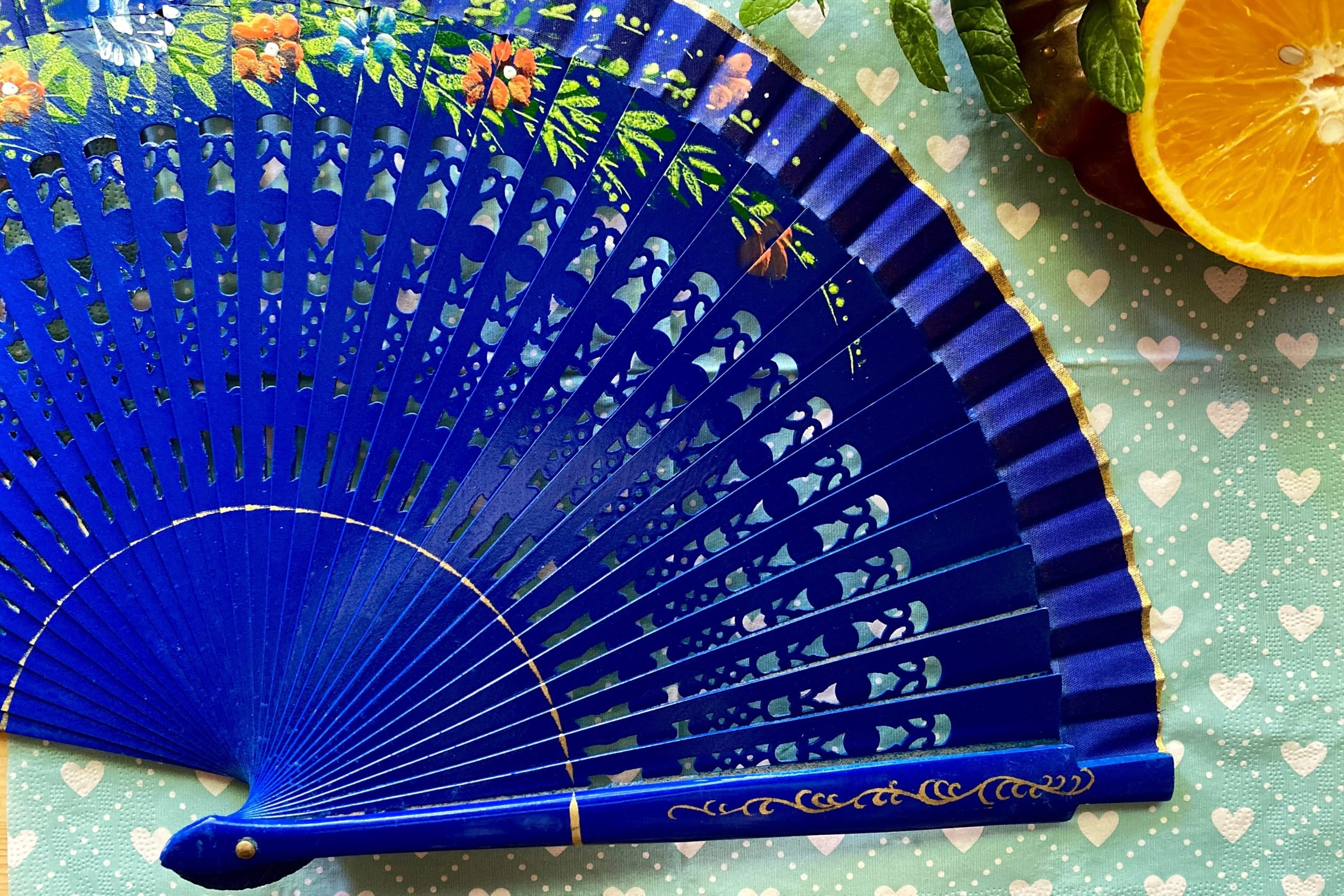 A good fan is one of the dancer’s most important accessories. Our fans are made of paper-thin carved wood and finished with cotton trim. Each fan is hand painted on both sides.