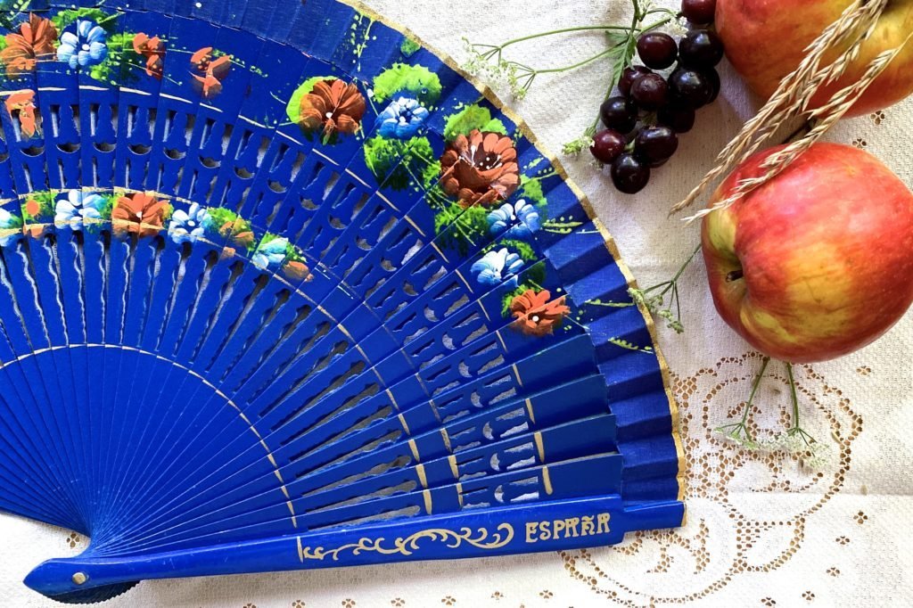 A good fan is one of the dancer’s most important accessories. Our fans are made of paper-thin carved wood and finished with cotton trim. Each fan is hand painted on both sides.
