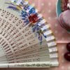 A good fan is one of the dancer’s most important accessories. Our fans are made of paper-thin carved wood and finished with cotton trim. Each fan is hand painted on both sides.