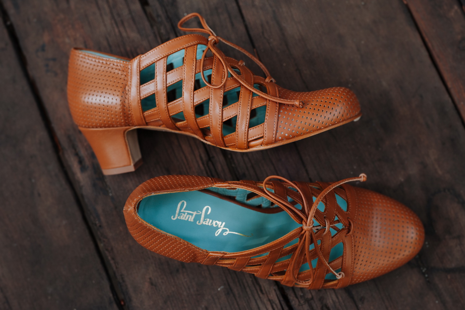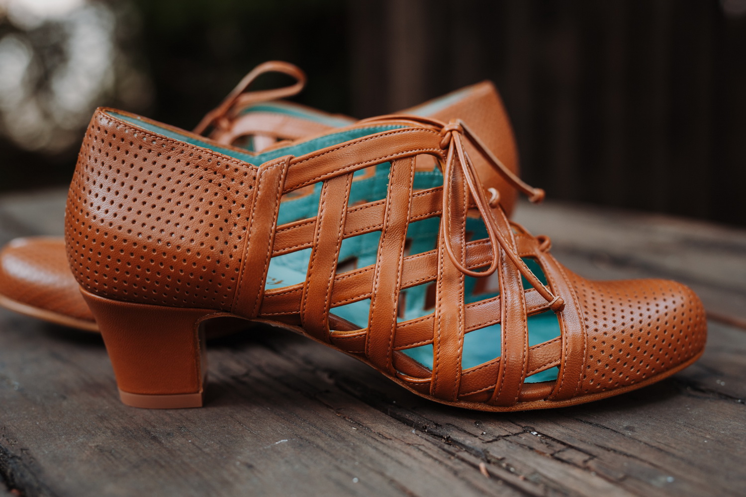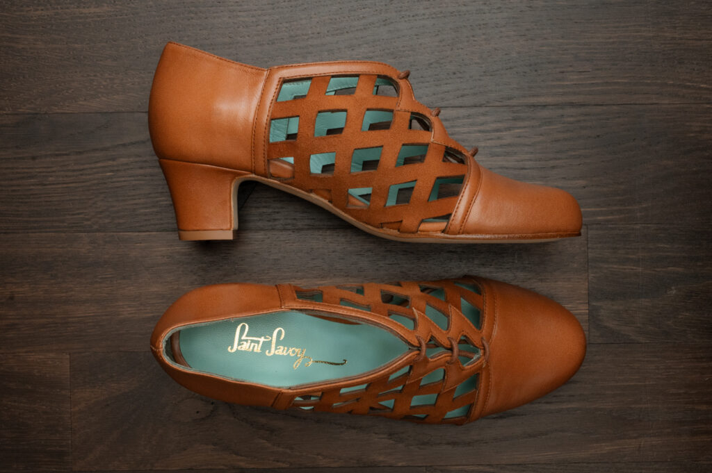 You will love these brown lace-up heels inspired by a model of 1930s shoes! Their shape provides solid support, while an intricate woven pattern creates a delicate look and excellent ventilation for your busy feet. These vintage shoes are not only extravagant, but oh so comfortable to walk all day and dance the night away!