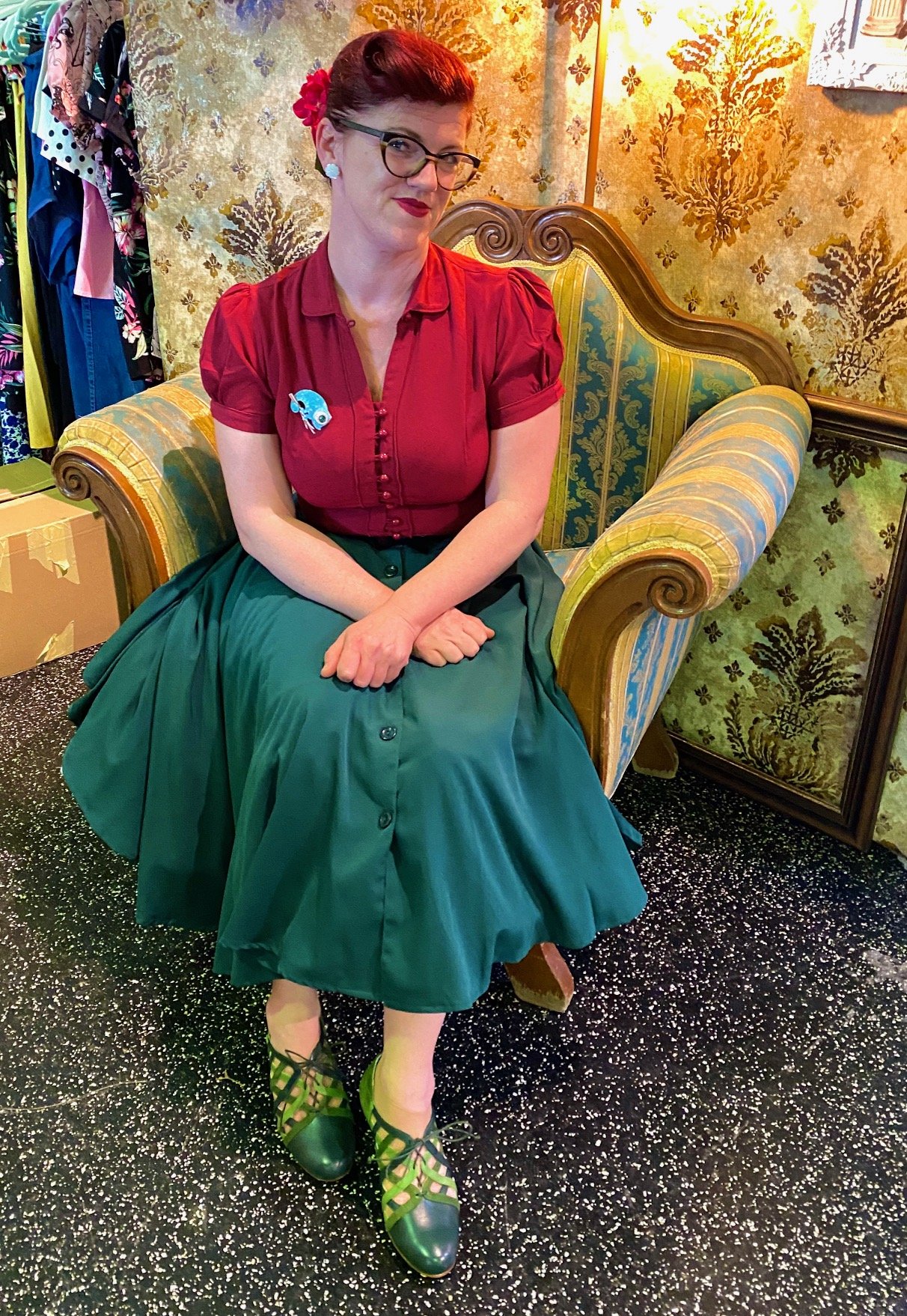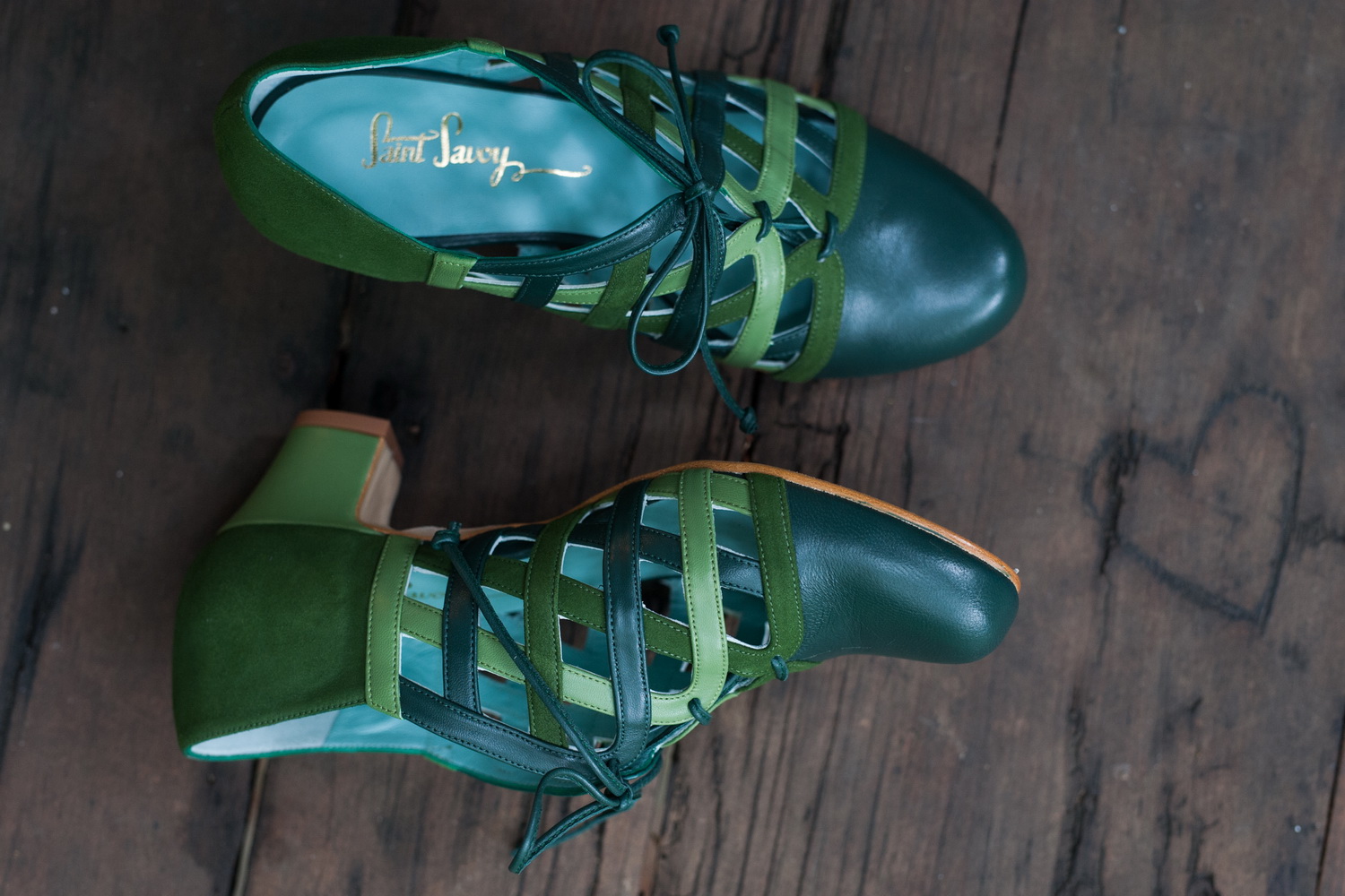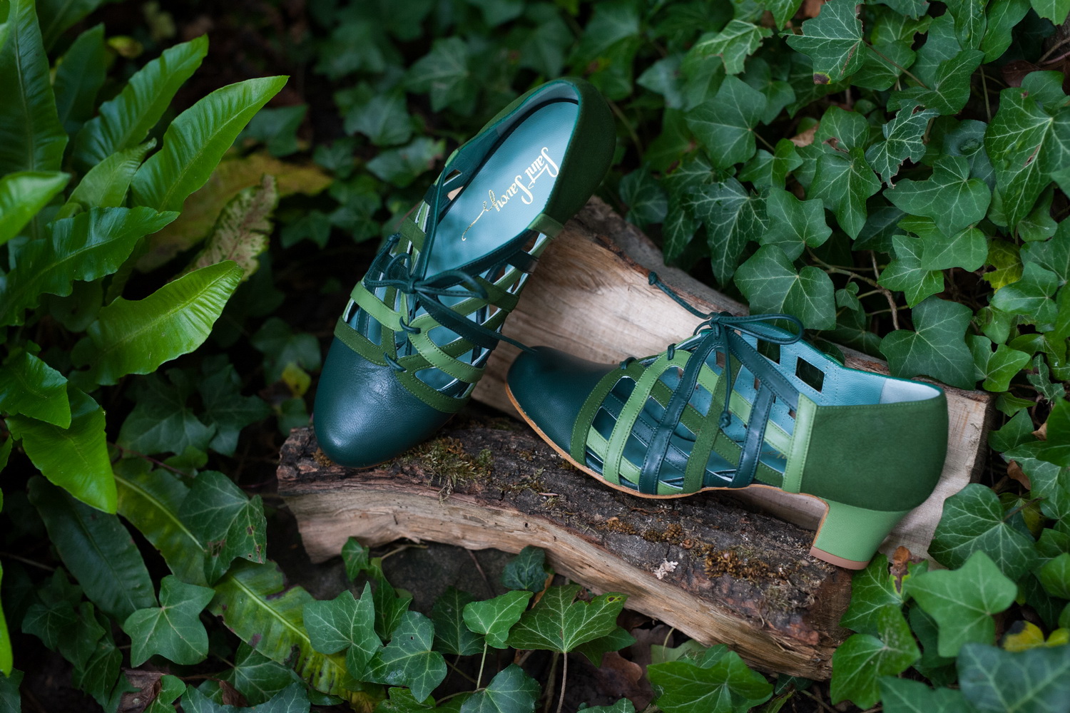 You will love these flamboyant lace-up heels in shades of green inspired by a model of 1930s shoes! Their shape provides solid support, while intricate woven leather bands create a delicate look and excellent ventilation for your busy feet. These vintage shoes are not only extravagant, but oh so comfortable to dance the night away!