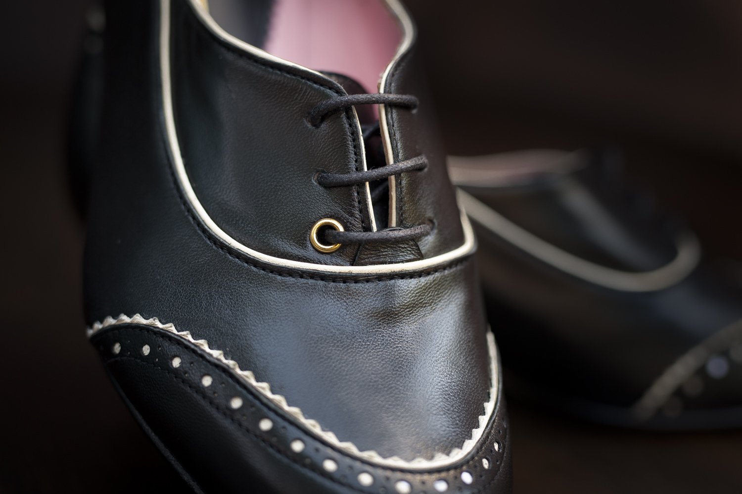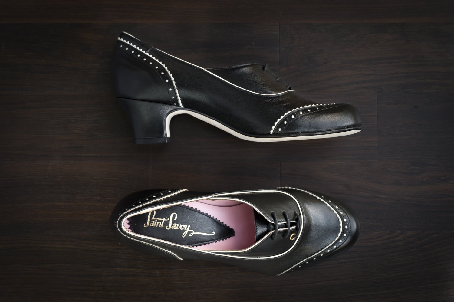 The SAINT SAVOY eyelet – our distinctive mark – embellishes these vintage dancing shoes, which comes with an extra pair of contrasting laces for added variety, and a shoe bag!