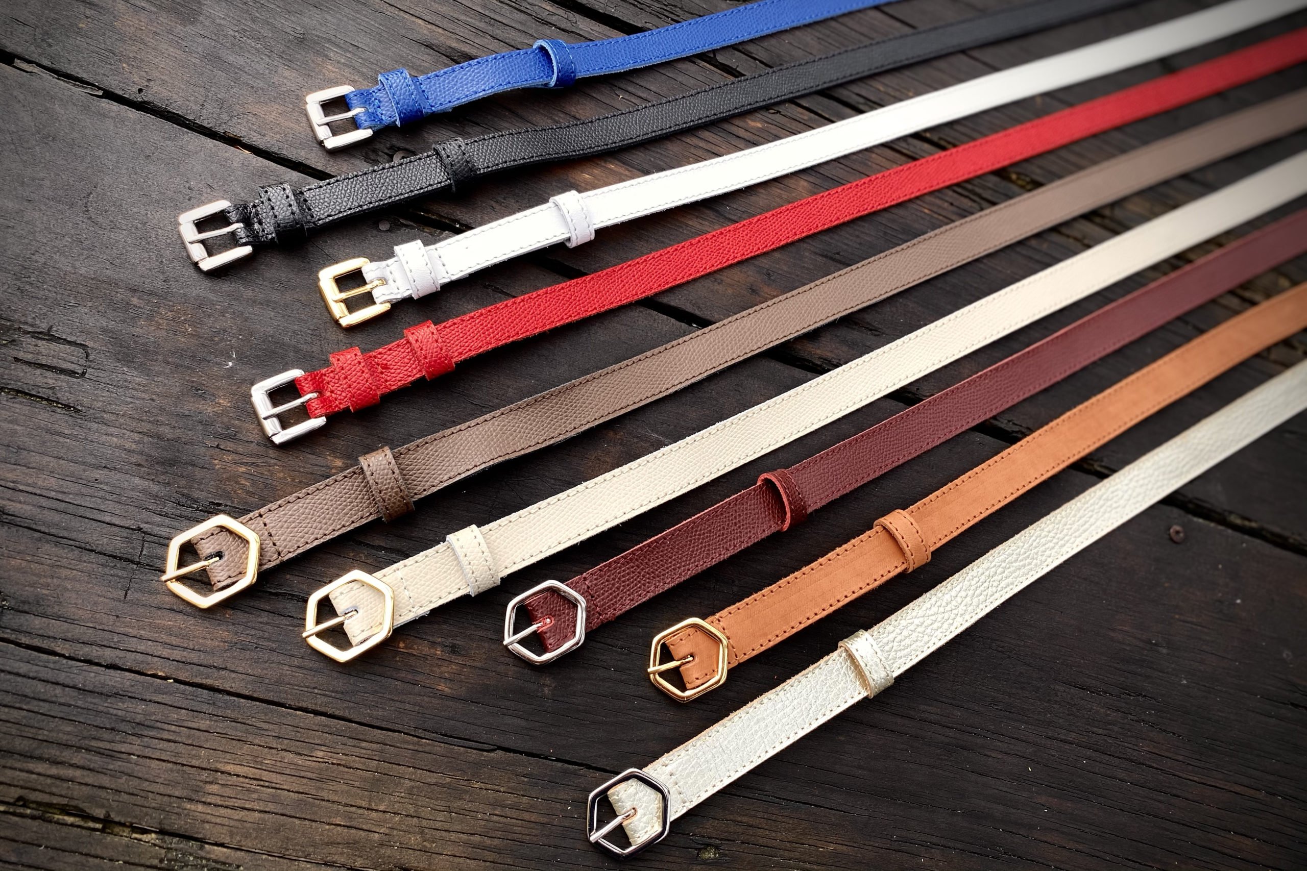 This belt is stylishly minimal, making it perfect for combining with trousers, dresses, and skirts. The length of this hand made belt is printed on the back and we discreetly placed our logo on the end. Enjoy a simple accessory with a great appearance!