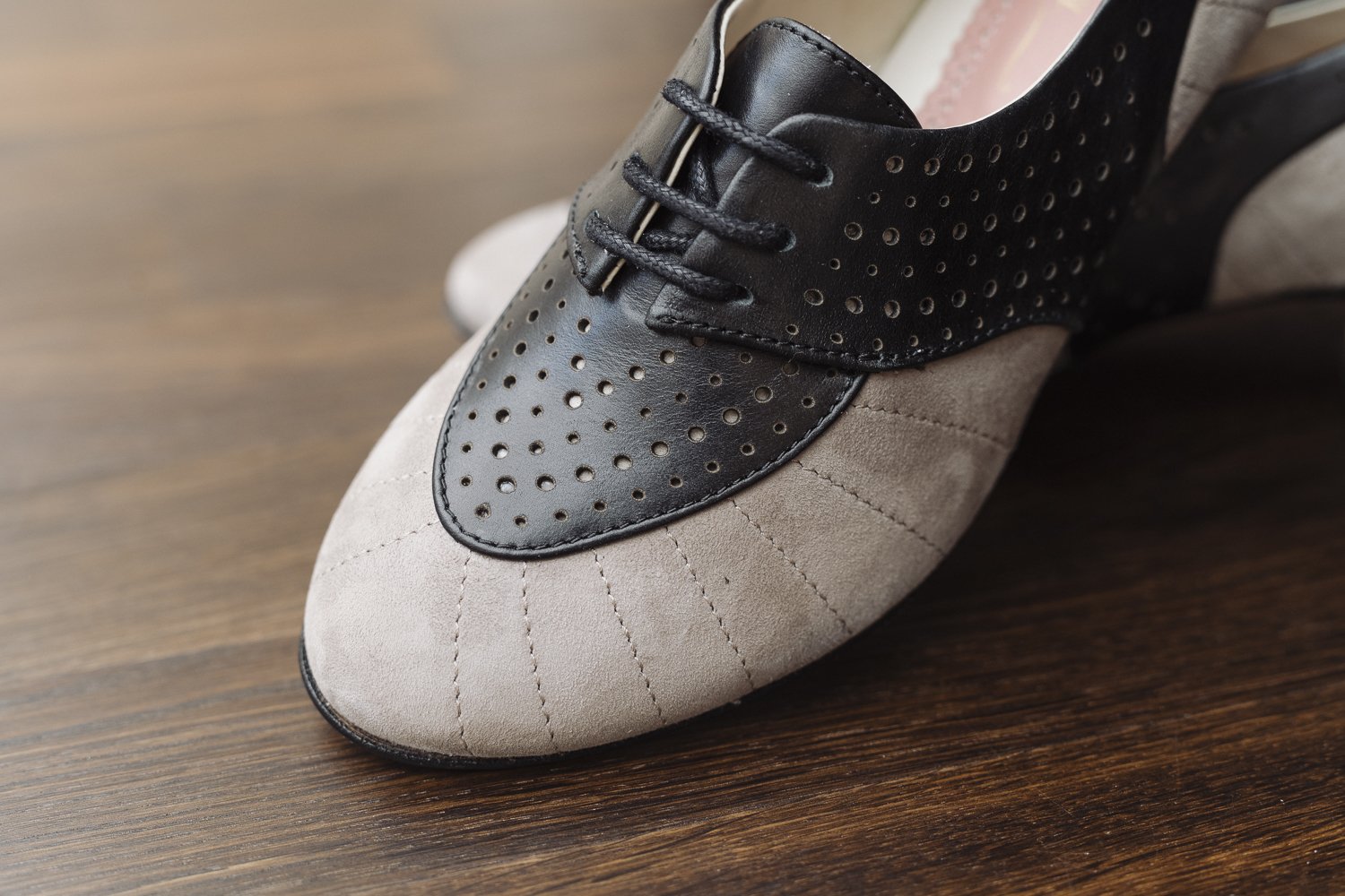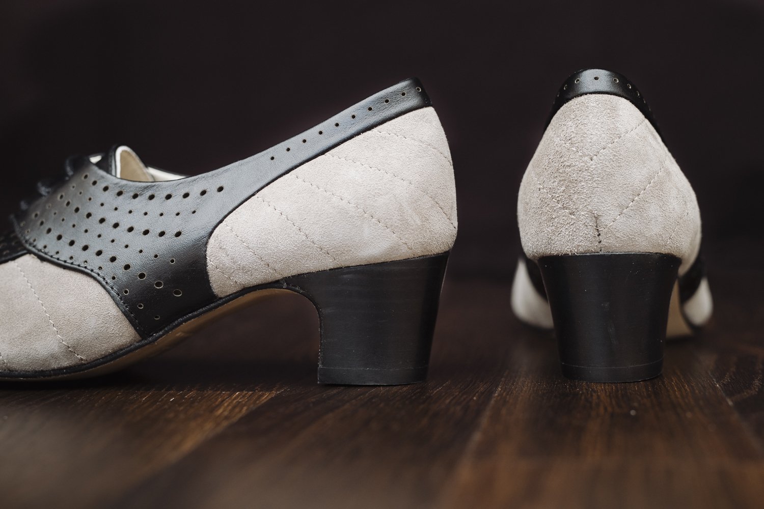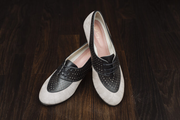 Made of soft, grey suede and smooth black leather, this versatile vintage footwear will draw attention to your outfit like a charm. The ladies two-tone style of the 1930s, 1940s and 1950s is available in additional colour combinations.