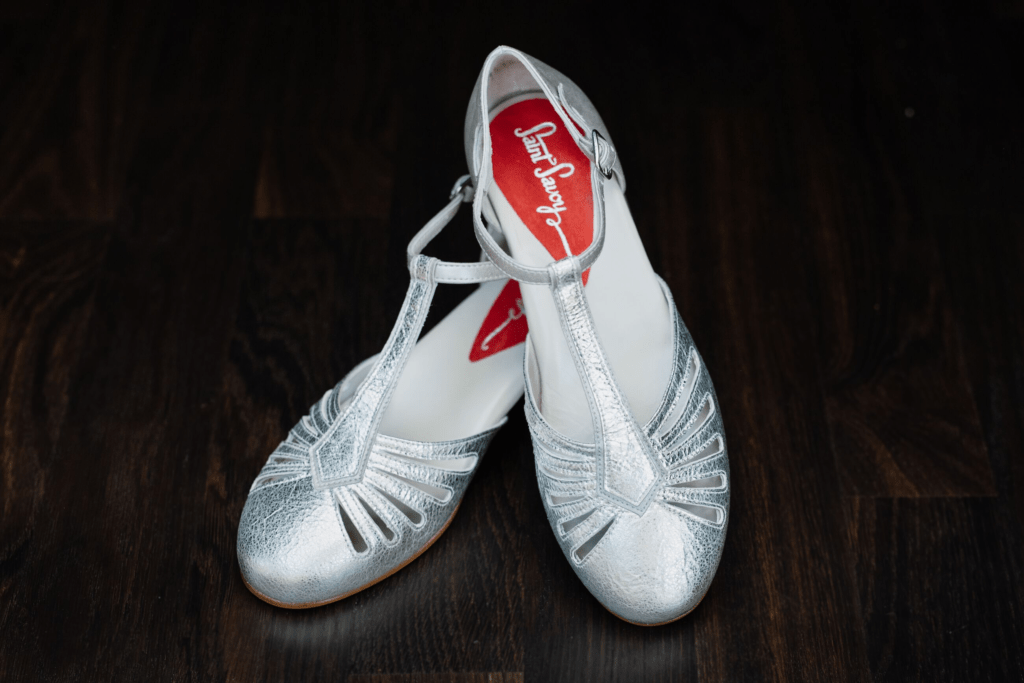 We have brought the magic of Vintage t-strap shoes to a flat! Not an easy feat, as we had to live up to some pretty high demands: the customary Saint Savoy aesthetic and quality, a cushy insole, snappy floor response, and robust sole combined with graceful elegance. These flat Vintage shoes have a brushed leather sole which makes them suitable for any floor and can be worn indoors and out. This elegant model inspired by 1920s shoes ist truly comfortable. All of which makes them the best dancing shoes!
