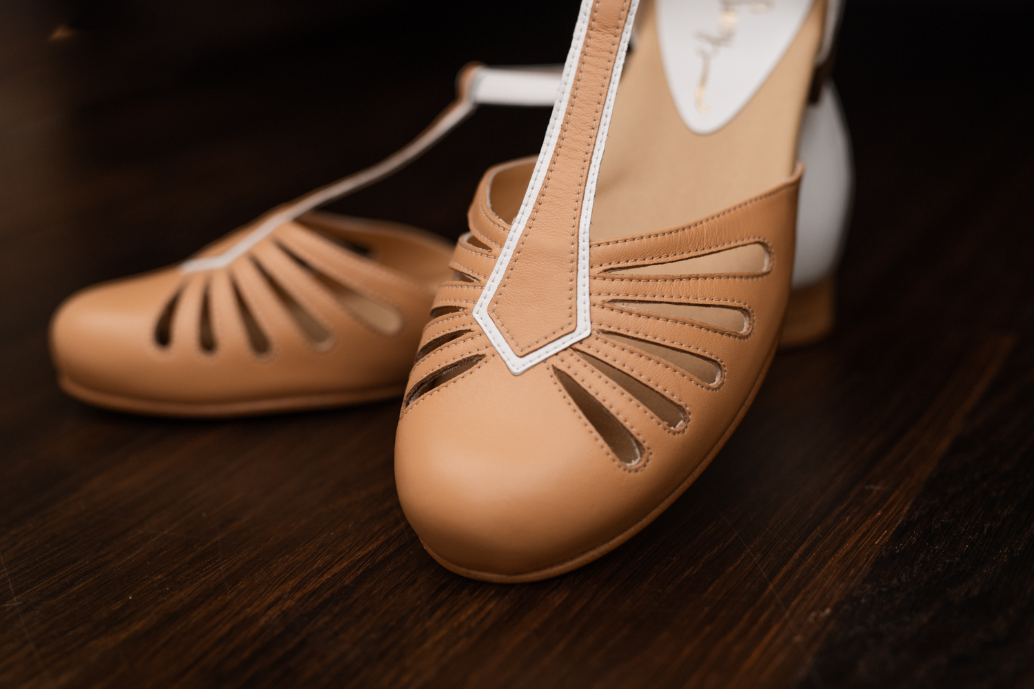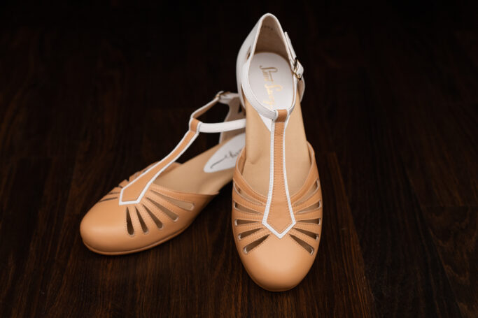 We have brought the magic of Vintage t-strap shoes to a flat! Not an easy feat, as we had to live up to some pretty high demands: the customary Saint Savoy aesthetic and quality, a cushy insole, snappy floor response, and robust sole combined with graceful elegance. These flat Vintage shoes have a brushed leather sole which makes them suitable for any floor and can be worn indoors and out. This elegant model inspired by 1920s shoes ist truly comfortable. All of which makes our model RIVIERA FLAT the best dancing shoes!