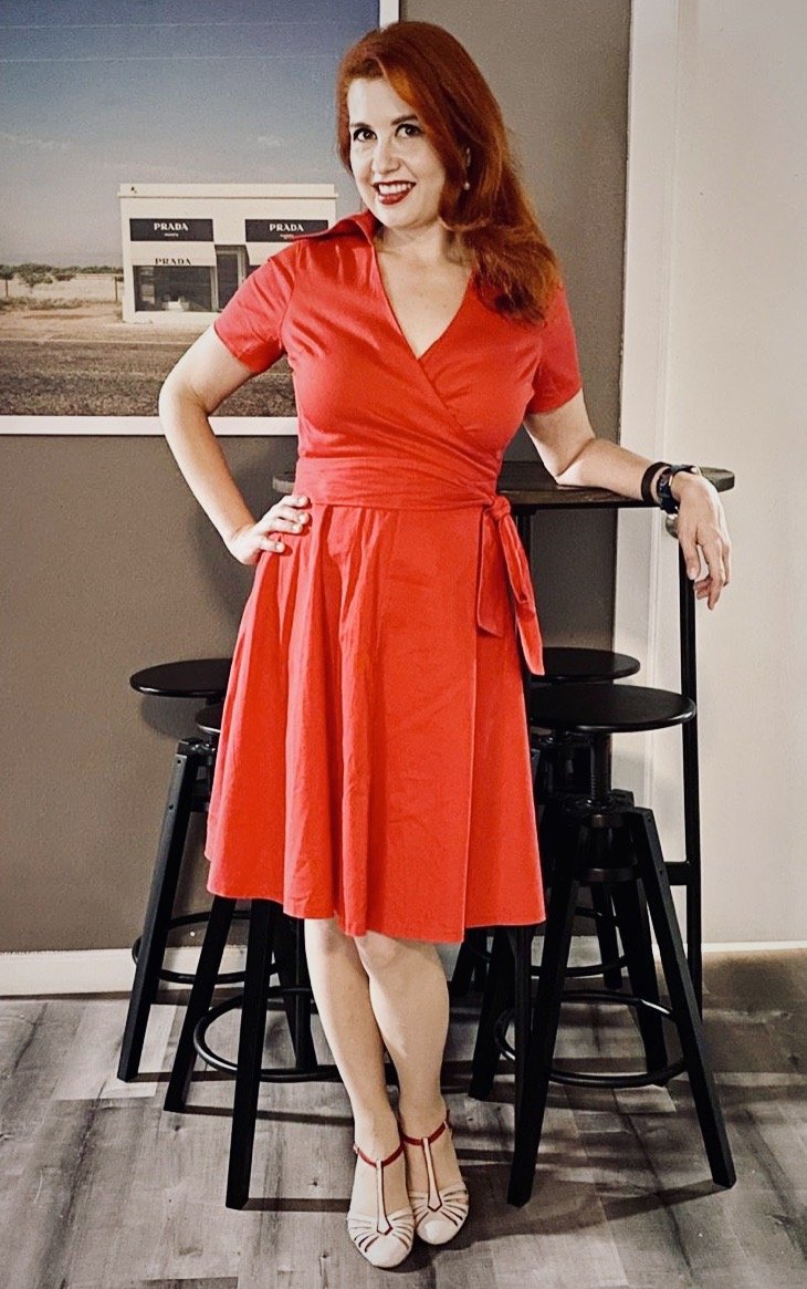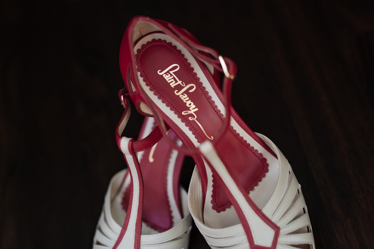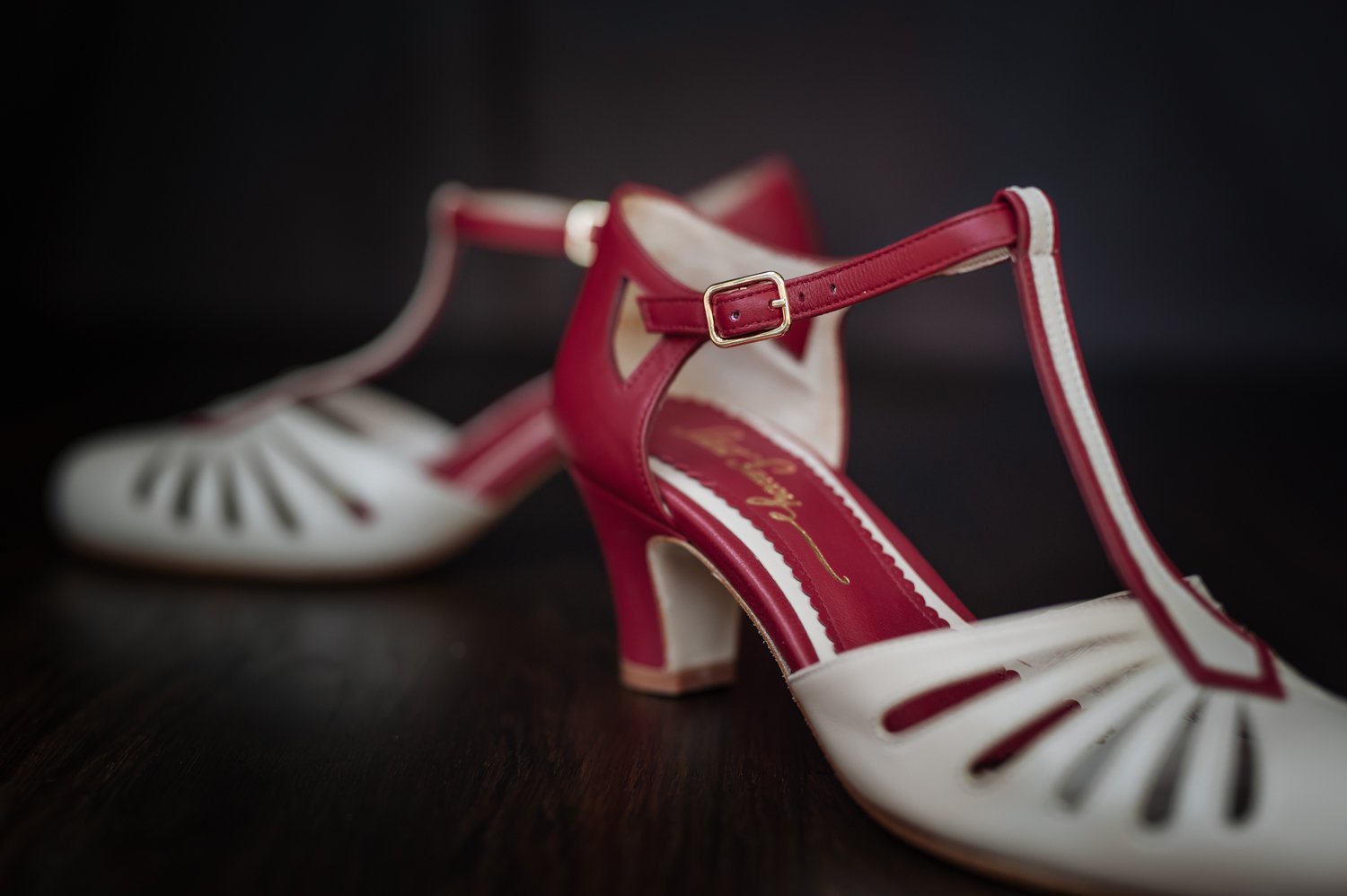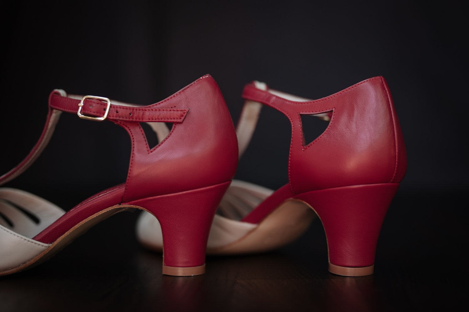 This is a striking shoe to make a statement! The front of the shoe is a soft neutral tan that contrasts to make the cherry red accent and heel of the shoe really pop! The red is a cool toned shade of red that’s both surprising and vibrant.
