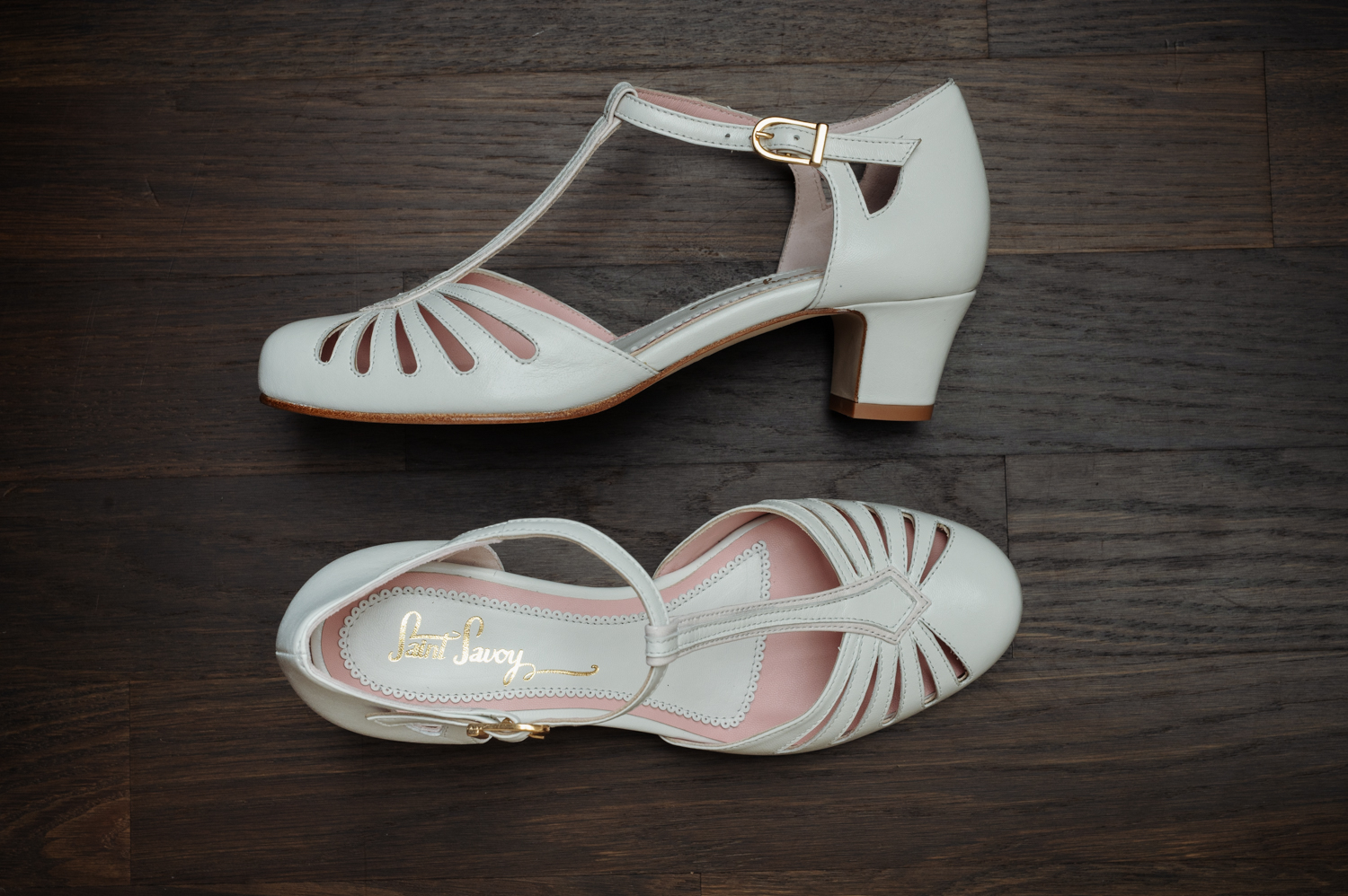 These neutral and soft off-white retro shoes bring an air of Art Deco with them! Great for walking or dancing, the soft padding and heel height are perfect for all occasions like weddings for example!