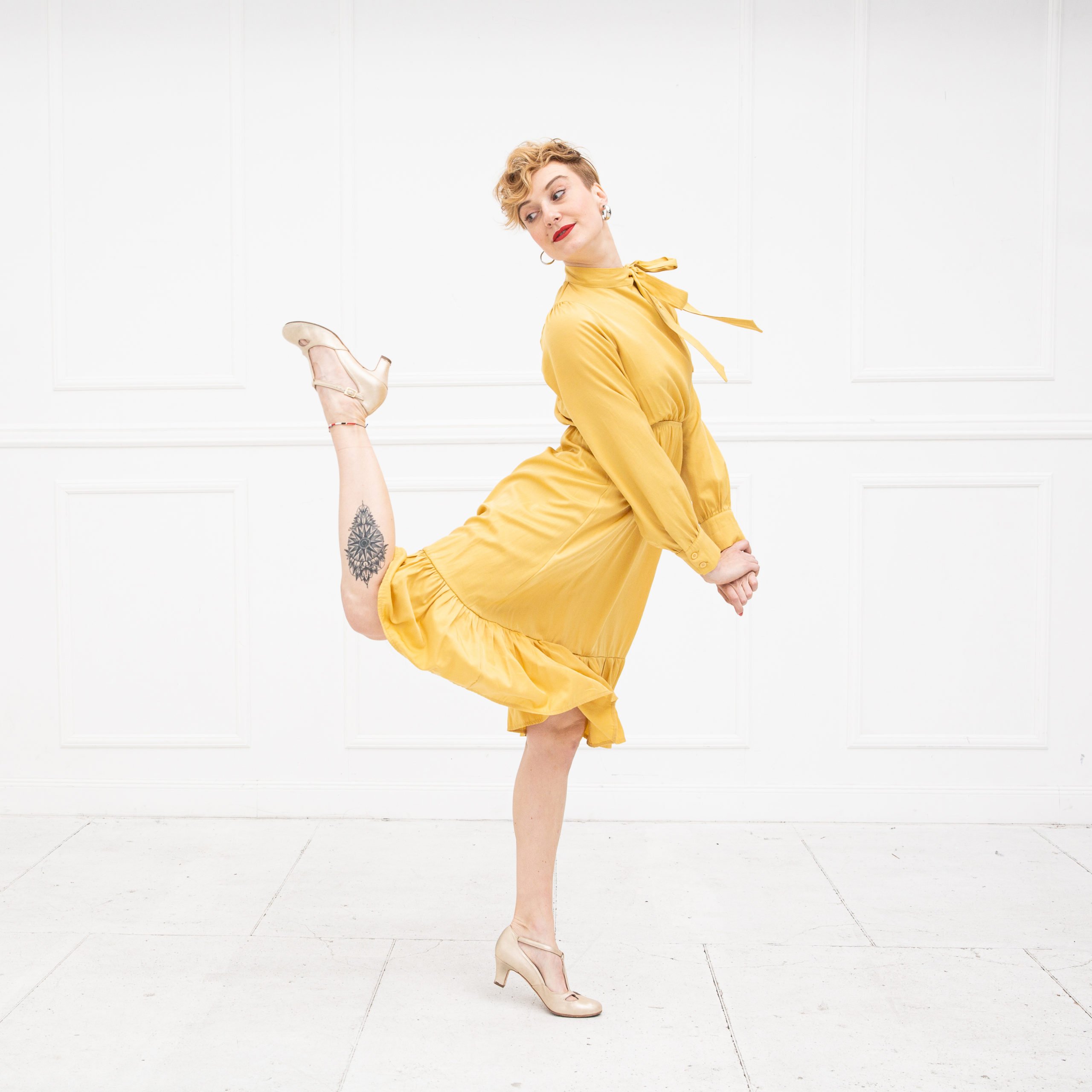 Ich liebe die Champagner-Farbe! Für meinen Geschmack noch eleganter als gold. Da diese nicht unbedingt wie ganz typische Tanzschuhe aussehen, gehen sie zu allem. Ich trage sie auch im Alltag zu Jeans. Beim Modell West benötige ich eine Schuhgröße größer als üblich.