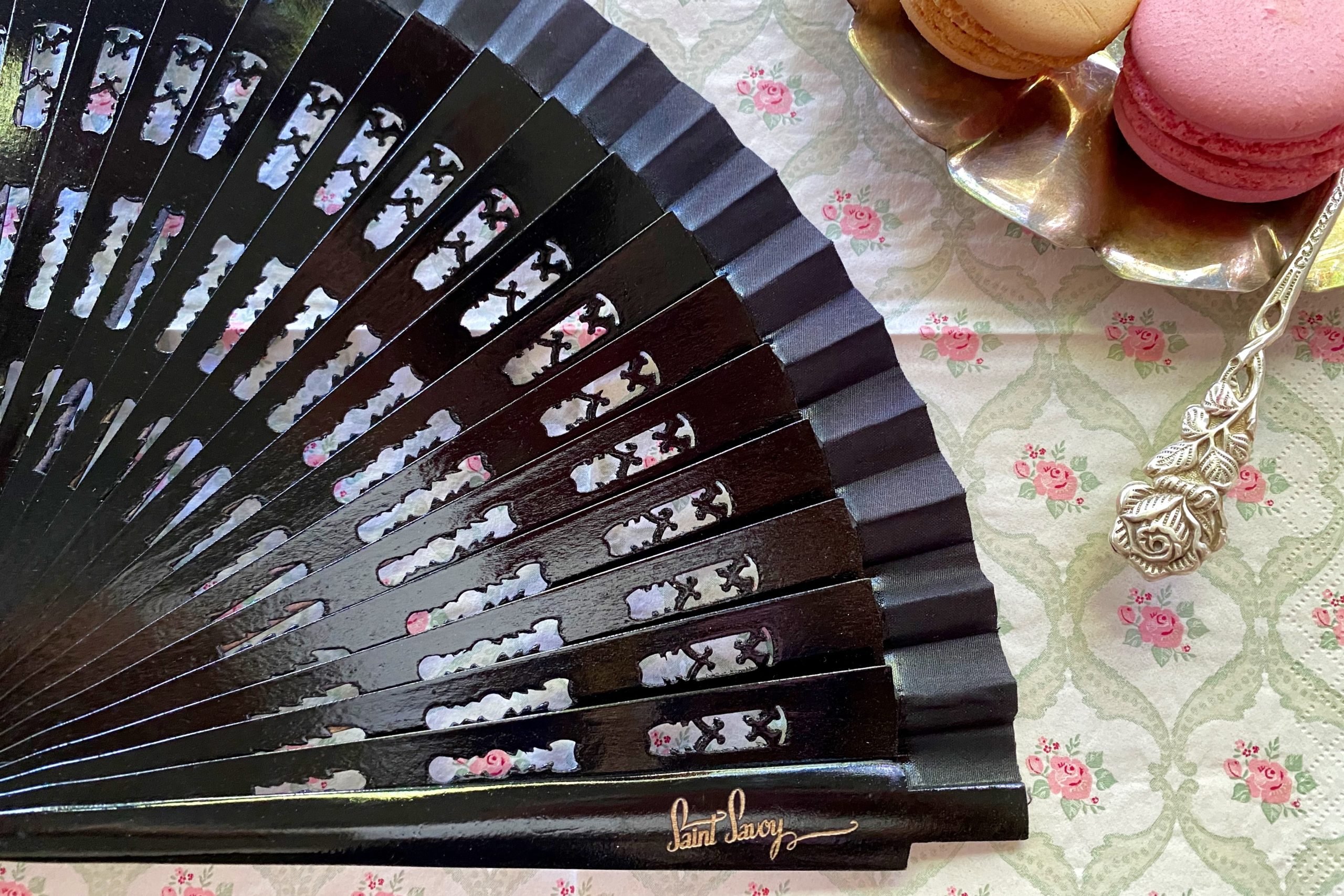 A good fan is one of the dancer’s most important accessories. Our fans are made of paper-thin carved wood and finished with cotton trim. We have carved the “COCO” pattern into the slats and delicately engraved our logo on the top cover.