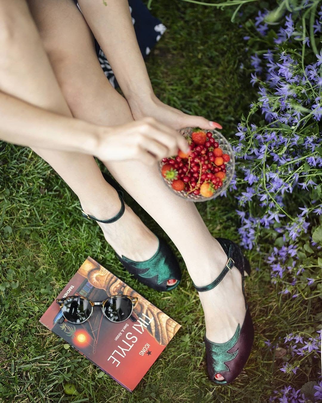@gretagardner’s feet looking lovely in a perfect summer setting of berries, flowers and EDEN Jungle shoes.