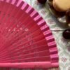 Unsere Fächer werden aus hauchdünn geschnittenem Vollholz gefertigt und mit einem Baumwollrahmen versehen. Wir haben das Muster „Coco“ in die Speichen eingefräst und unser Logo dezent auf die Deckspeiche graviert.