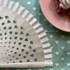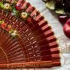 Unsere Fächer werden aus hauchdünn geschnittenem Vollholz gefertigt und mit einem Baumwollrahmen versehen. Wir haben das Muster „Fortuna“ in die Speichen eingefräst und unser Logo dezent auf die Deckspeiche graviert.