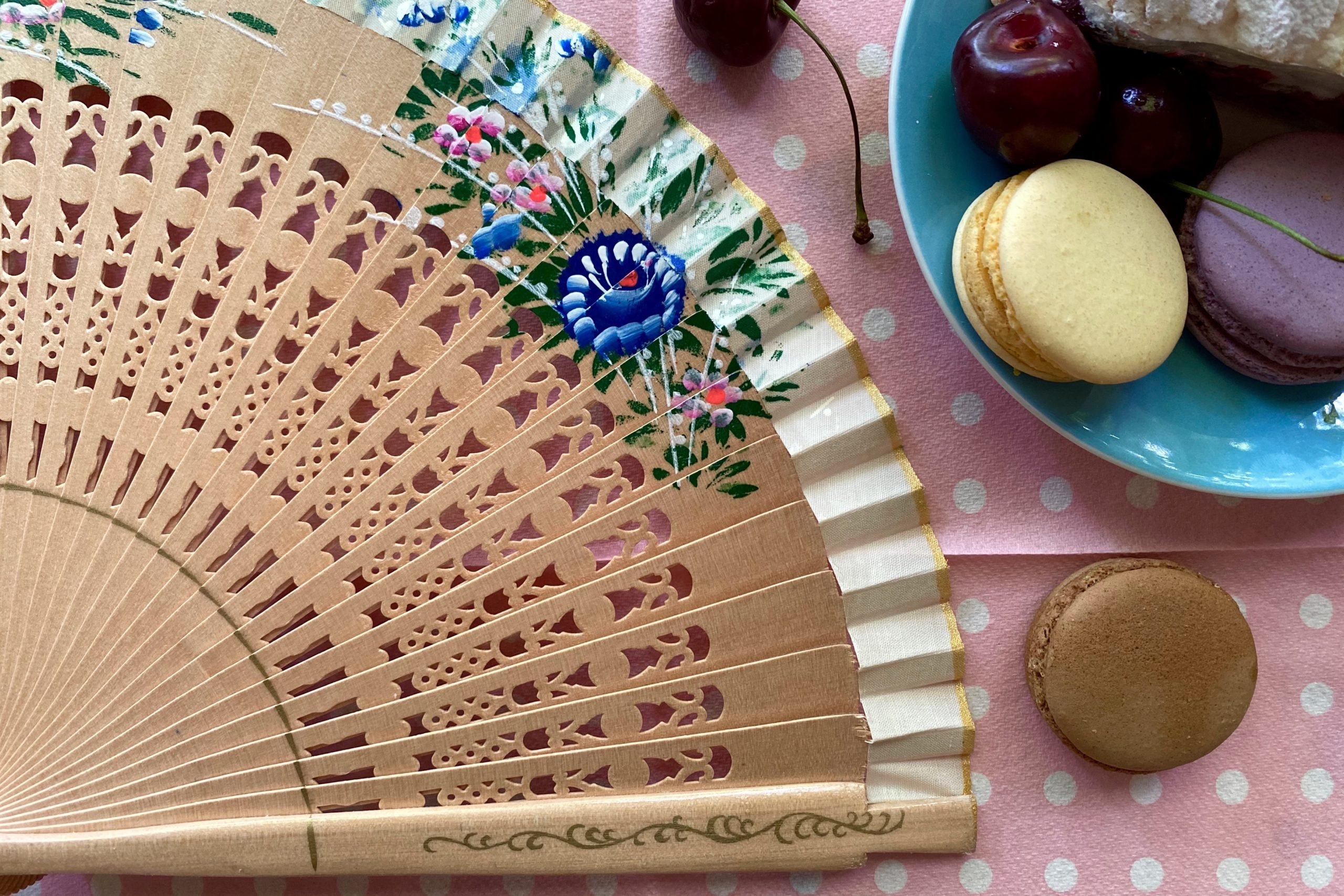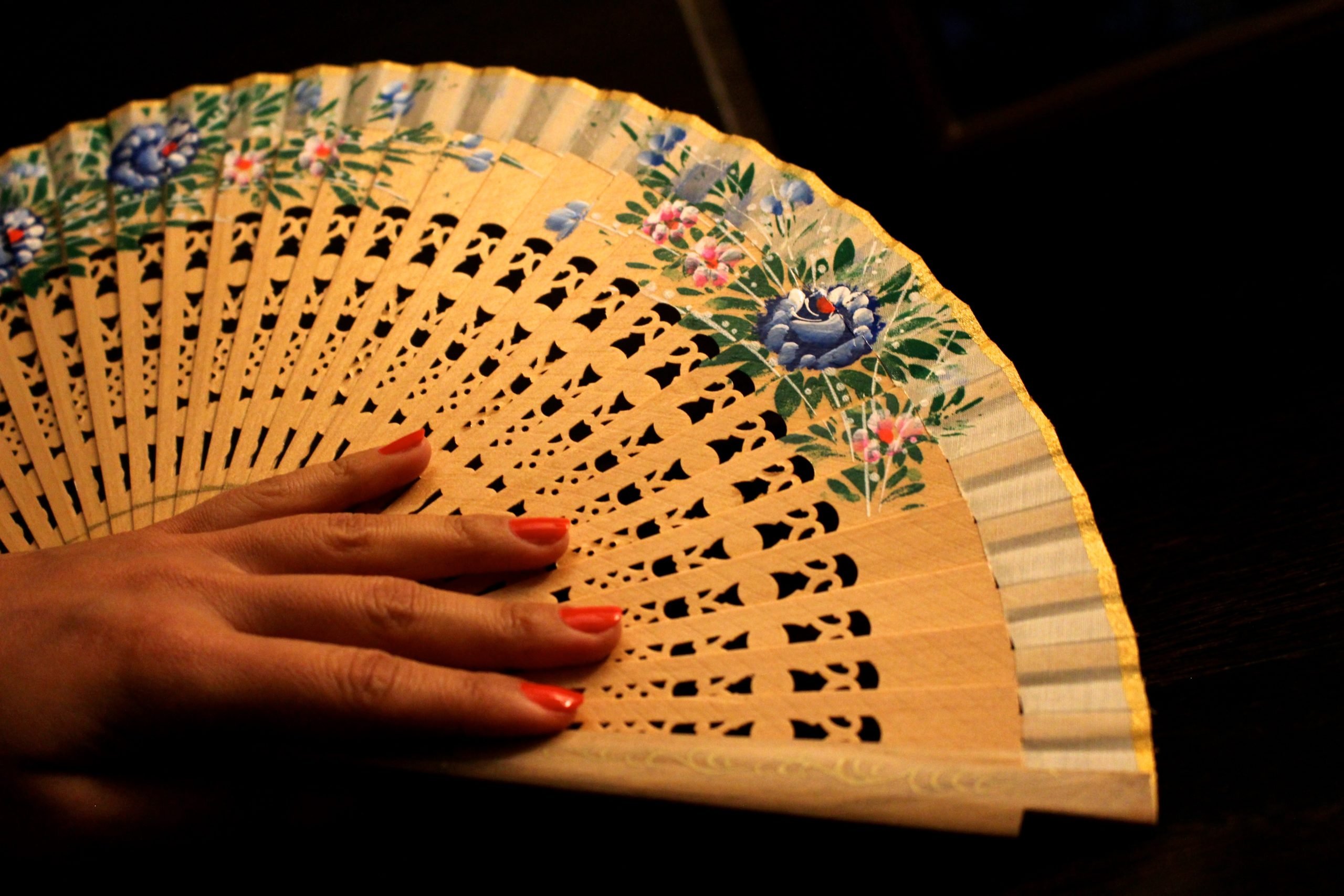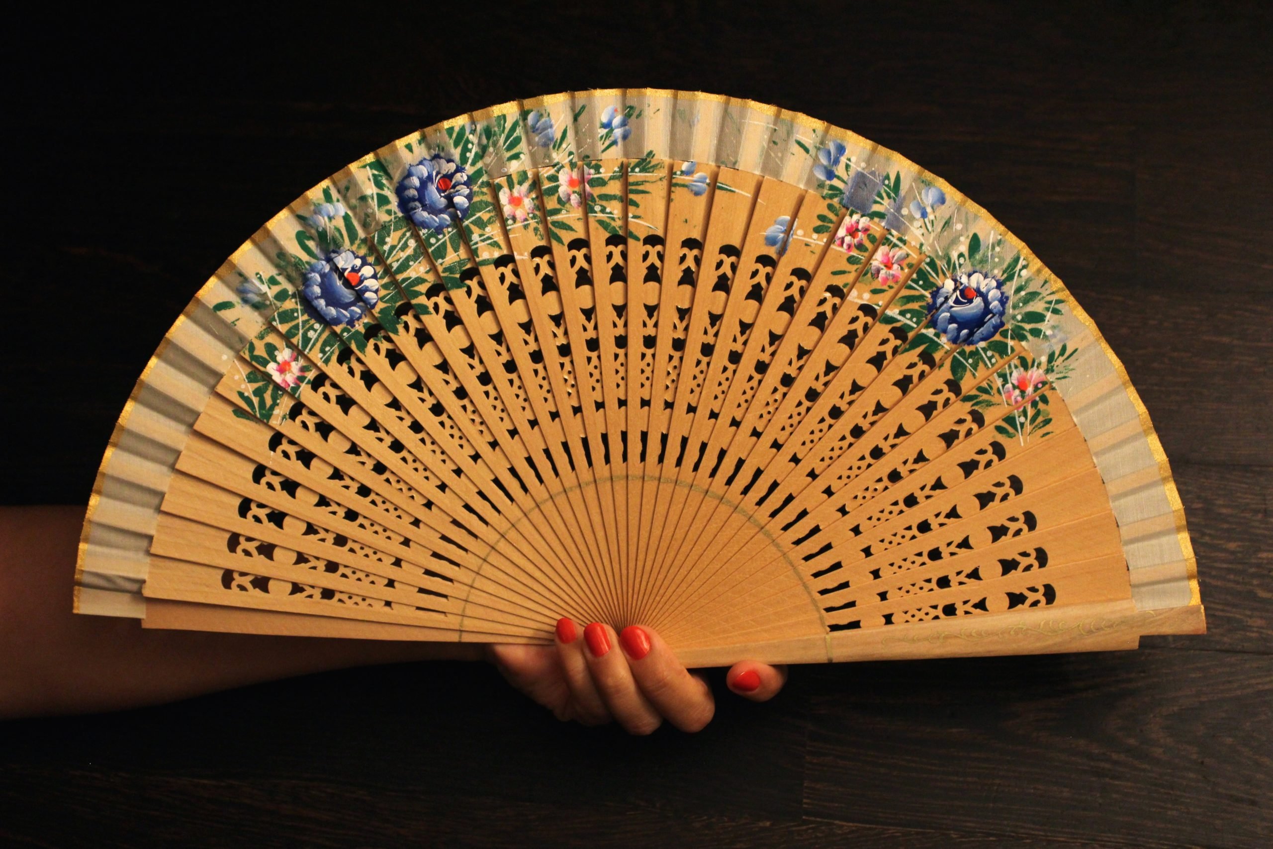 Der Fächer ist eines der wichtigsten Accessoires des Tänzers. Unsere Fächer werden aus hauchdünn geschnittenem Vollholz gefertigt und mit einem Baumwollrahmen versehen. Jeder einzelne Fächer wird beidseitig handbemalt.