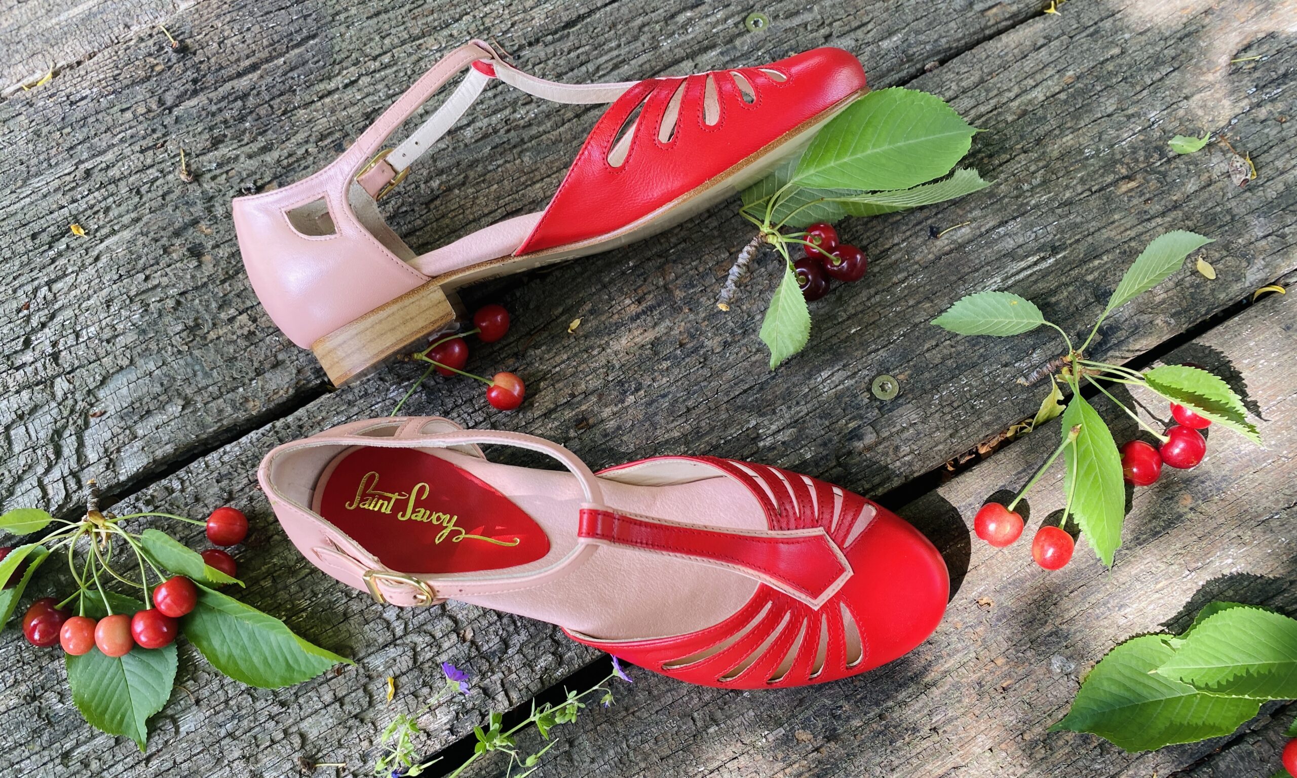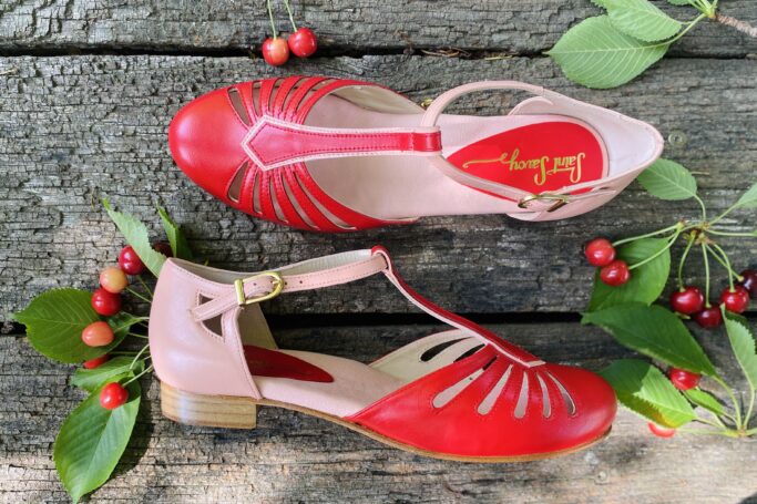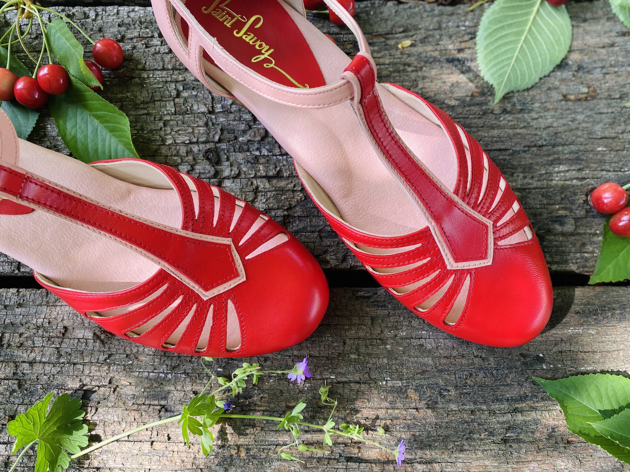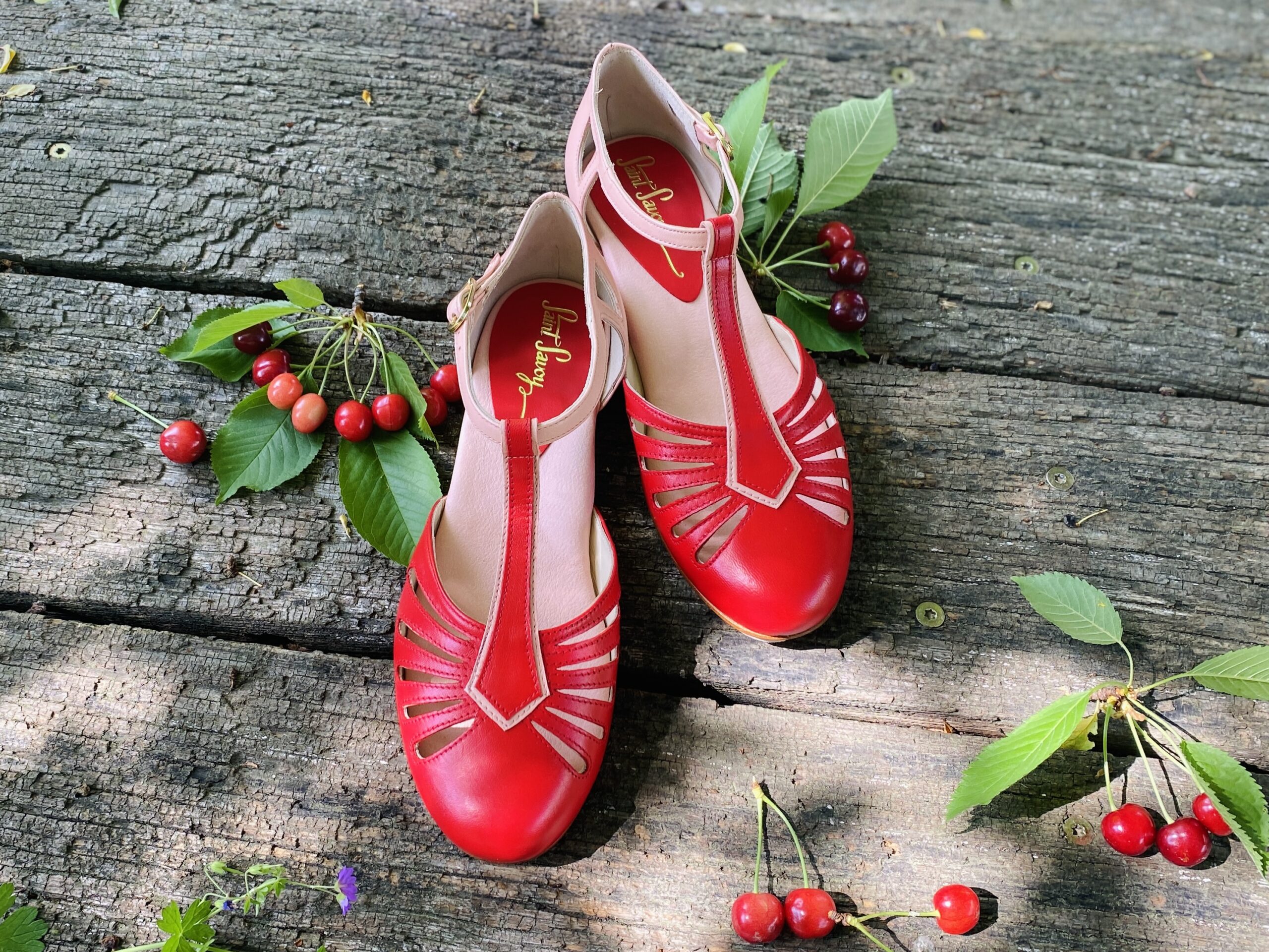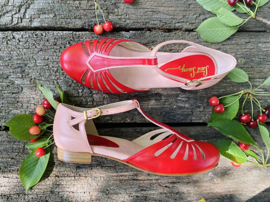 Aus weichem, roten und rosé färbigen Ziegenleder gefertigt, machen diese wandlungsfähigen Retro Schuhe bestimmt jedes Outfit zum Blickfang. Dieses Modell gibt es in anderen Farben auch mit 3,5cm oder 5cm hohen Absätzen RIVIERA und RIVIERA High.