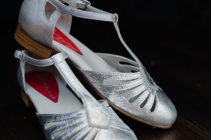 Elegante, flache Schuhe, die sich für alle Lebenslagen eignen: bequem, bezaubernd und perfekt zum Tanzen! Dieser charmante silber T-Strap Schuh ist die flache Version unseres beliebtesten Modells. Sie werden das weiche, handgeformte Fußbett dieser Vintage Schuhe lieben und viele Komplimente sind Ihnen garantiert!