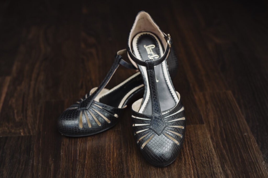 Unser Modell RIVIERA eignet sich sowohl zum Tanzen als auch für den täglichen Gebrauch. Das Fußbett dieses Modells im Stil der 1920er Jahre wird in England hergestellt, wo man es geschafft hat, eine weiche Polsterung, gute Stoßdämpfung und ein flexibles Bodengefühl zu gewährleisten. Die Absatzhöhe beträgt 3,5cm und hat eine breite Auflagefläche, die Sohle besteht aus aufgerautem Leder, passend also für jeden Boden und auch im Freien tragbar.