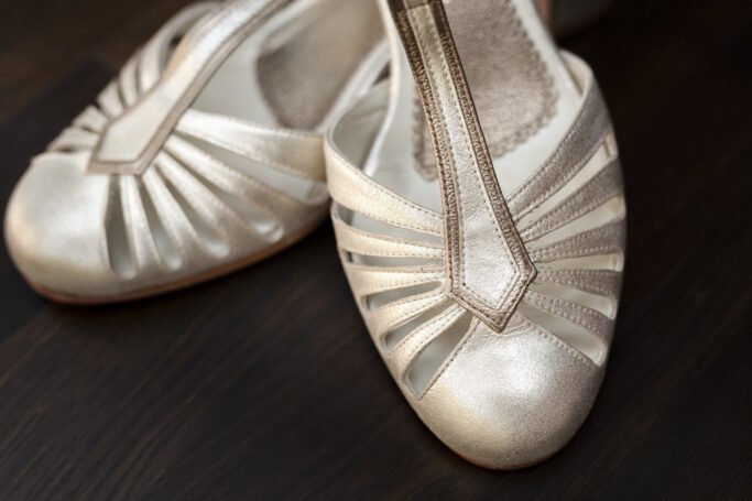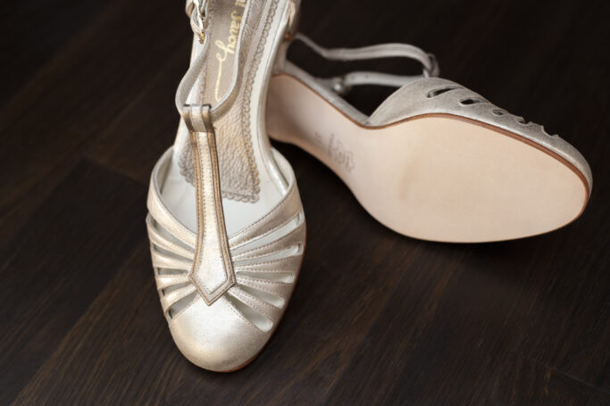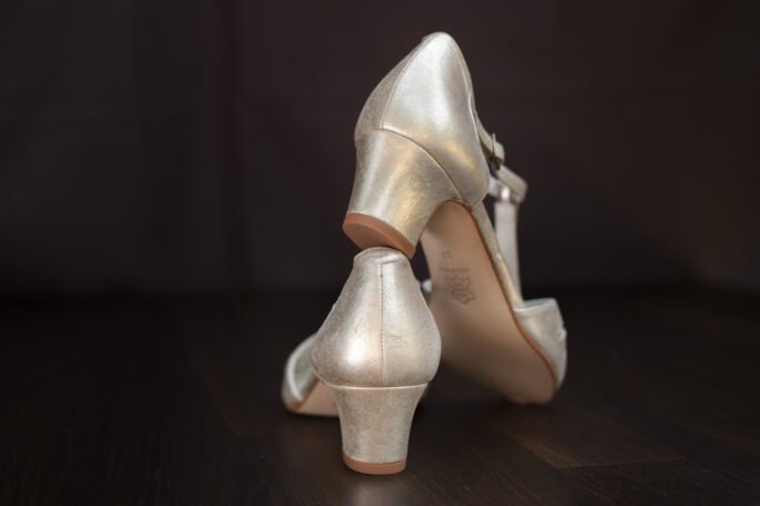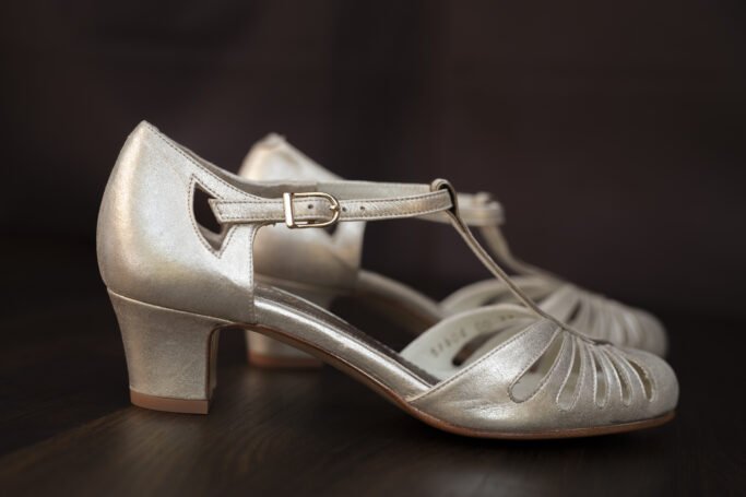 Diese Retro Schuhe mit T-Strap in einem warmen goldenen Nude sind das beste Beispiel für zeitlos elegante bequeme Schuhe, die jedes Outfit zu einem Blickfang machen. Für den Alltag, besondere Gelegenheiten und als Tanzschuhe sind diese Vintage Schuhe dank ihrer weichen Polsterung und der Absatzhöhe von nur 3,5cm bestens geeignet. Natürlich kommt unser wandlungsfähiger Bestseller auch oft als Brautschuhe zum Einsatz!